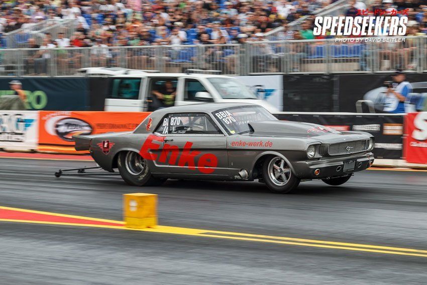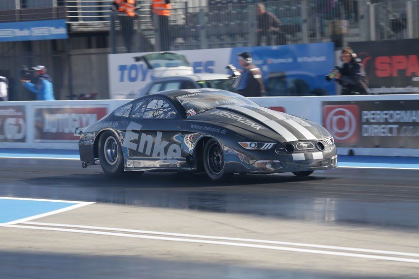 Ford Mustang mit einem 6.0 Chassis Abnahme | Ford Small-Block 460 cui = 7,5 Liter Hubraum | Aufladung mit einen F3-121 Procharger / 16 Injektoren, Kraftstoff Methanol | Leistung ca. 2500 NM mit ca. 2000 PS | Gewicht ohne Fahrer 1035 kg | Fahrzeugklasse Competition Eliminator, AB/A Index ¼ mile 7,13 sec.